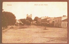 | Dyliżans pocztowy przed gmachem magistratu 1915 r. Dzisiejszy UMiG. |