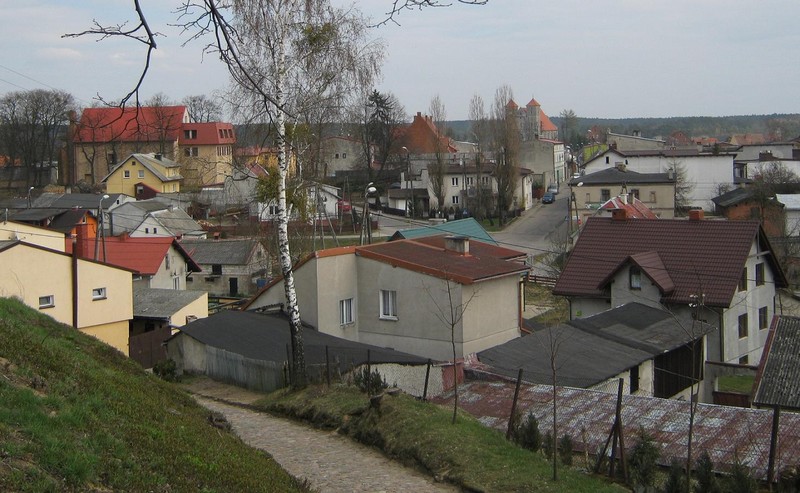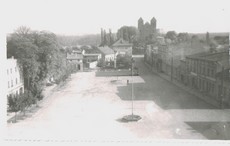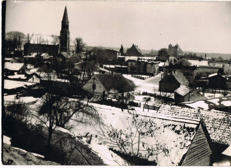 | Widok ze wzgórza cmentarnego na miasto 1960/2013. |