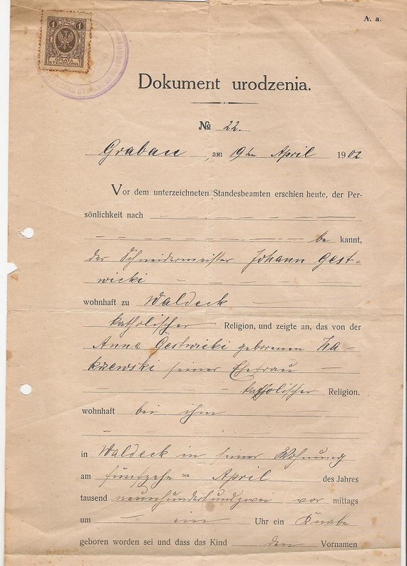 Urodził się 15 kwietnia 1902 roku w Wałdykach ( okolice Lubawy). Jego rodzicami byli: Gęstwicki Jan i Anna Zakrzewska. |