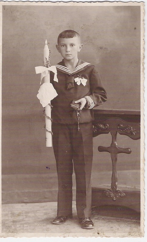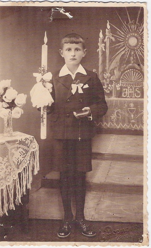 Pierwsza komunia Eugeniusza Jana Gęstwickiego w kościele w Górznie (ur. 11.11.1926r. w Zaborowie zm. 03.12. 2009r w Anglii). |
