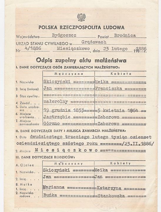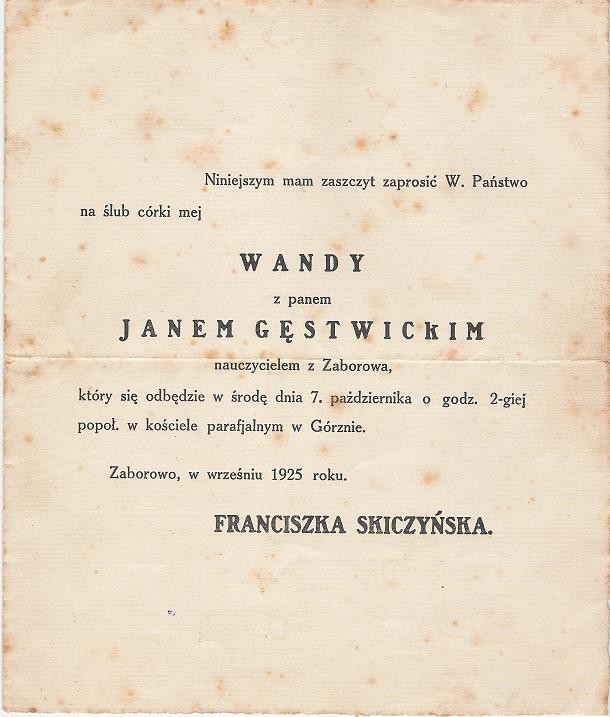 Rodzicami Wandy byli: Skiczyński Jan i Meika Franciszka. |