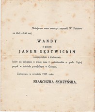 Ślub Jana i Wandy zaplanowano na 7 października 1925 roku. |