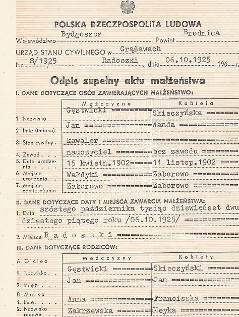 Ślub cywilny odbył się 06.10.1925 w Radoszkach. |