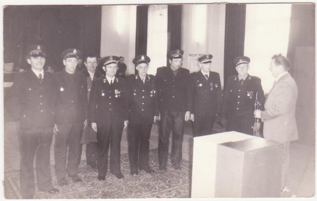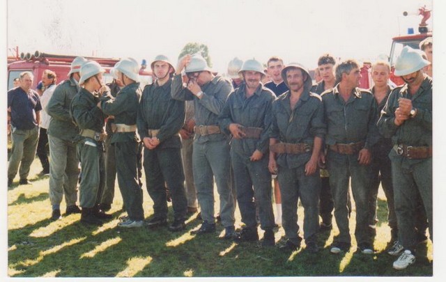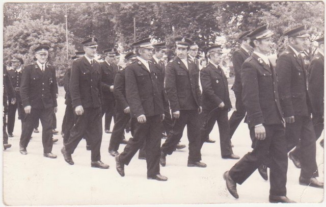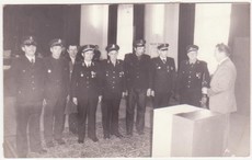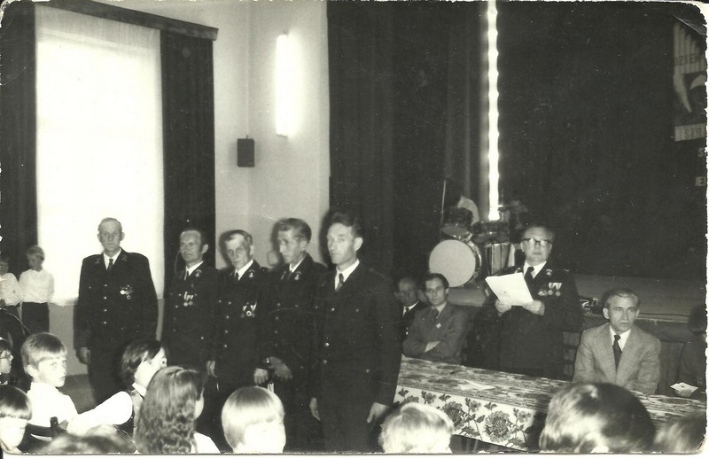 | Dzień Strażaka. Odznaczeni druhowie: Ludwik Narodzonek, Wincenty Piotrowski, Leopold Domżalski, Mieczysław Gorczyński, Kazimierz Wiśniewski. | Wybory lata 70. Od lewej: Tadeusz Kwas, Kazimierz Wiśniewski, Kazimierz Ochocki (z tyłu ), Wincenty Piotrowski, Leopold Domżalski, Jerzy Szóstakowski, Dionizy Gąsiorowski, Ludwik Narodzonek. Kwiaty wręcza Maksymilian Szóstakowski. |