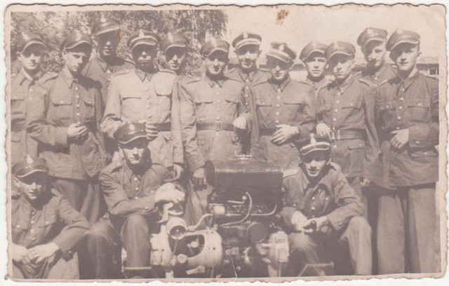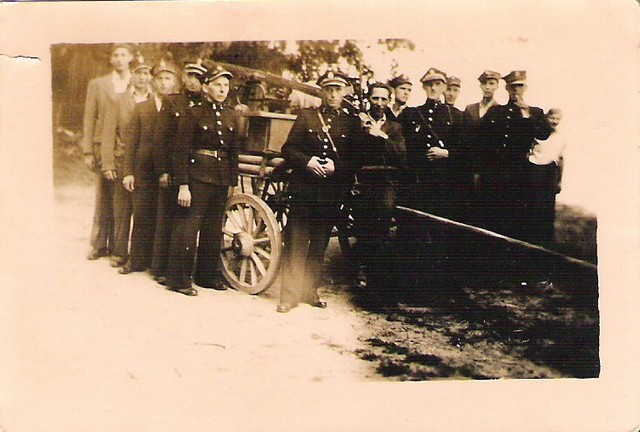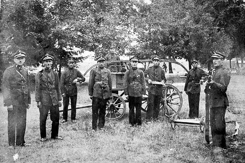 | Pierwsza sikawka w Zaborowie międzywojennym. Pierwszy od lewej Jan Gęstwicki w środku Krzemieniewski Maksymilian. |
