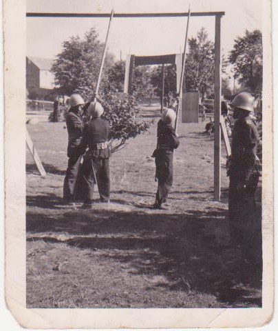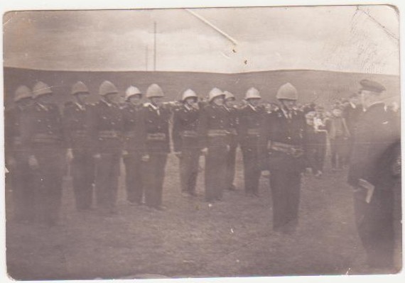 | Zawodowa Straż Pożarna w Brodnicy ( parking koło kościoła Fara ) w środku 3 od lewej Ludwik Narodzonek | 1 maj 1959 r. Górzno ul. Stodolna |