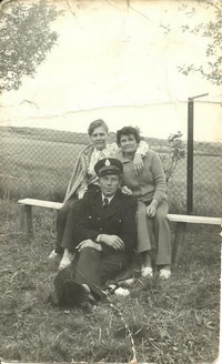 | Ludwik Narodzonek ( 6 od prawej w gornym rzędzie) na szkoleniu w Bydgoszczy w 1952 roku | Ludwik Narodzonek ( na krześle ) , Leopold Domżalski ( z tyłu ) |