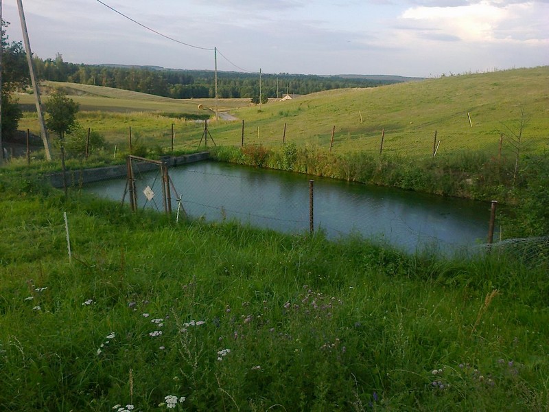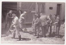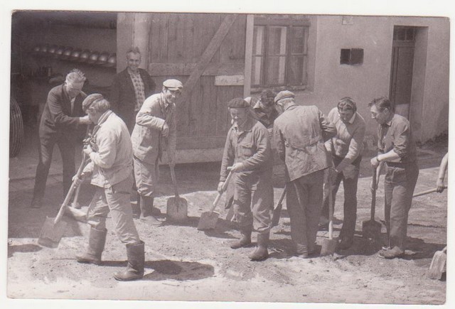 Budowa basenu strażackiego wlatach 50/60 o konstrukcji drewnianej (faszyna). Póżniej faszynę zastąpiono betonem. Tadeusz Ruciński na górze, Henryk Florkiewicz na dole.