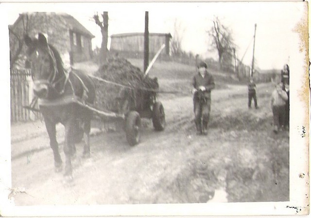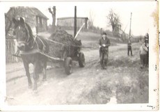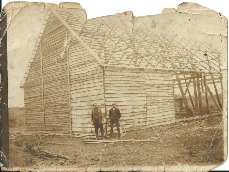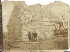Budowa stodoły u Skiczyńskich przez Józefa Rucińskiego zaraz po drugiej wojnie światowej. |