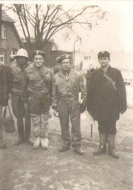 Ćwiczenia obrony cywilnej. Od lewej stoją: Leopold Domżalski, Gienek Smoliński, Józef Bółkowski.