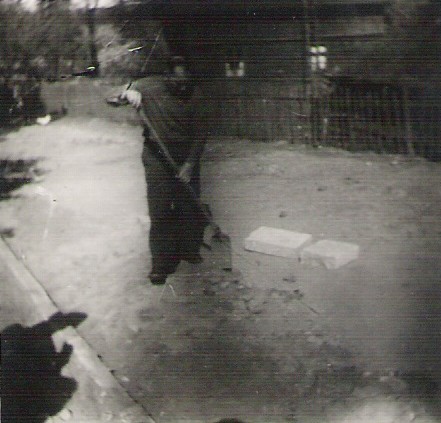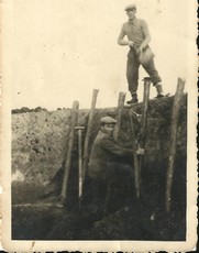 Budowa basenu strażackiego wlatach 50/60 o konstrukcji drewnianej (faszyna). Póżniej faszynę zastąpiono betonem. Tadeusz Ruciński na górze, Henryk Florkiewicz na dole. |