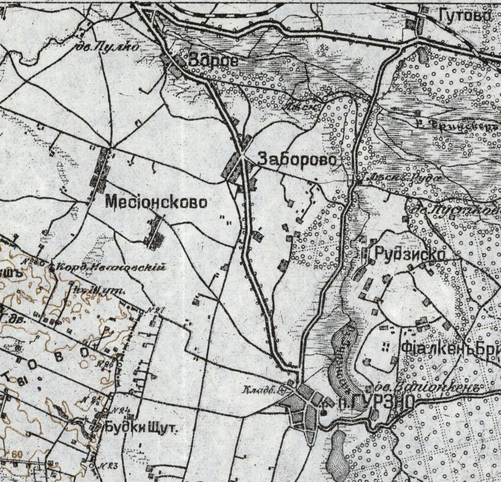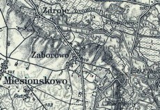 Fragment niemieckiej, wojskowej mapy Zaborowa z roku 1913. |