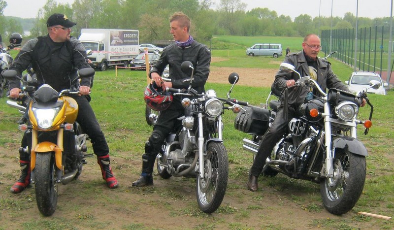 Nie ważne na czym byle w drogę. Na zdjęciu po lewej: J Szóstakowski, J Kwas, R Kwas. Na zdjęciu po prawej: Motocykliści 2013 i ich maszyny.
