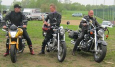 Nie ważne na czym byle w drogę. Na zdjęciu po lewej: J Szóstakowski, J Kwas, R Kwas. Na zdjęciu po prawej: Motocykliści 2013 i ich maszyny. |