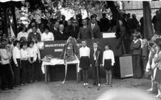 Lata siedemdziesiąte: po lewej pięćdziesięciolecie koła gospodyń wiejskich, po prawej Dzień Kobiet. |