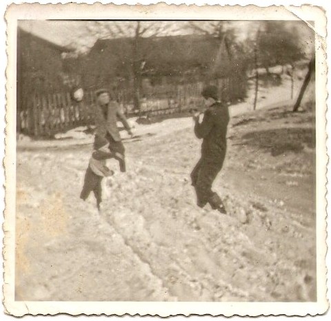 Walka na śnieżki między Rochem Kwas, Piotrem Kwas i Jerzym Kwas (na Dołku).