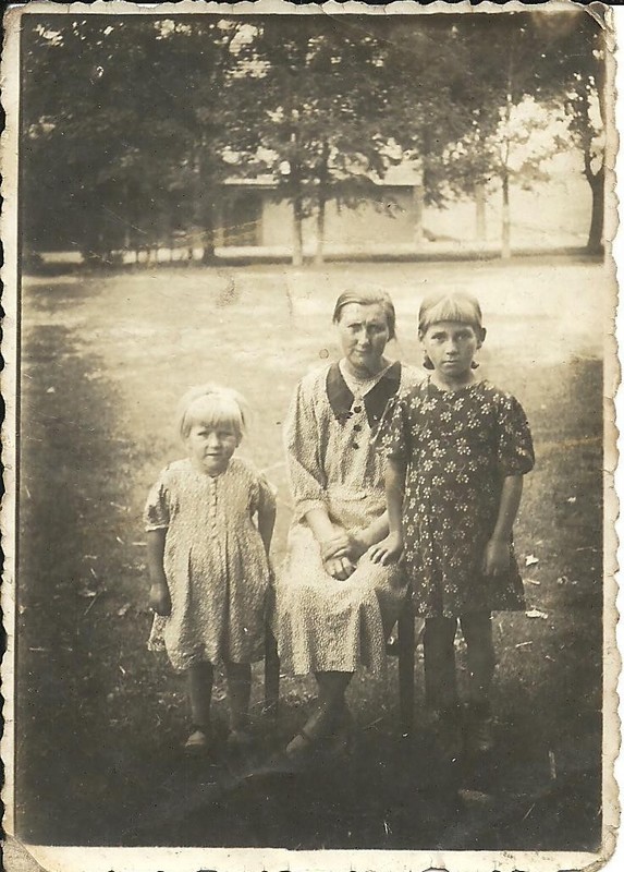 Marianna Figurska z córkami: Teresą i Stefanią na boisku szkolnym. |
