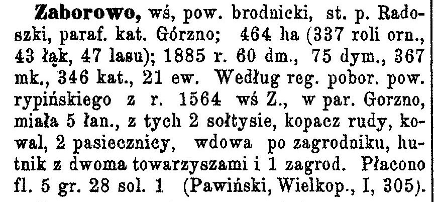 Skan księgi parafii Górzno z1772 roku. Jest napisane w tej księdze które miejscowości należały do "FARY" Górzno. Między innymi Zaborowo. Więcej można odszukać w archiwach.