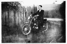 Pogrzeb Ryszarda Szóstakowskiego. Zginął na motocyklu między Zaborowem a Rudziskami w 1966 roku (ze zdjęciem idą: Ludwik Kwas, Elżbieta Szóstakowska, Grzegorz Kwas). |