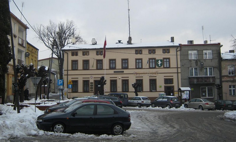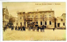 | Dyliżans pocztowy przed gmachem magistratu 1915 r. Dzisiejszy UMiG. |