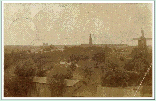 | Widok ze wzgórza cmentarnego na miasto 1960/2013. |